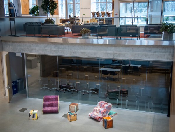 Preus was Interpreter in Residence at the Smart Museum from 2018-2020. Working with high school students the residency produced a collection of objects and processes with the remains of furntiure collected from closed Chicago public schools. Students had an opportunity to deconstruct pieces of furniture which were then reconfigured into the installation pictured above at the University of Chicago Harris School for Social Policy.