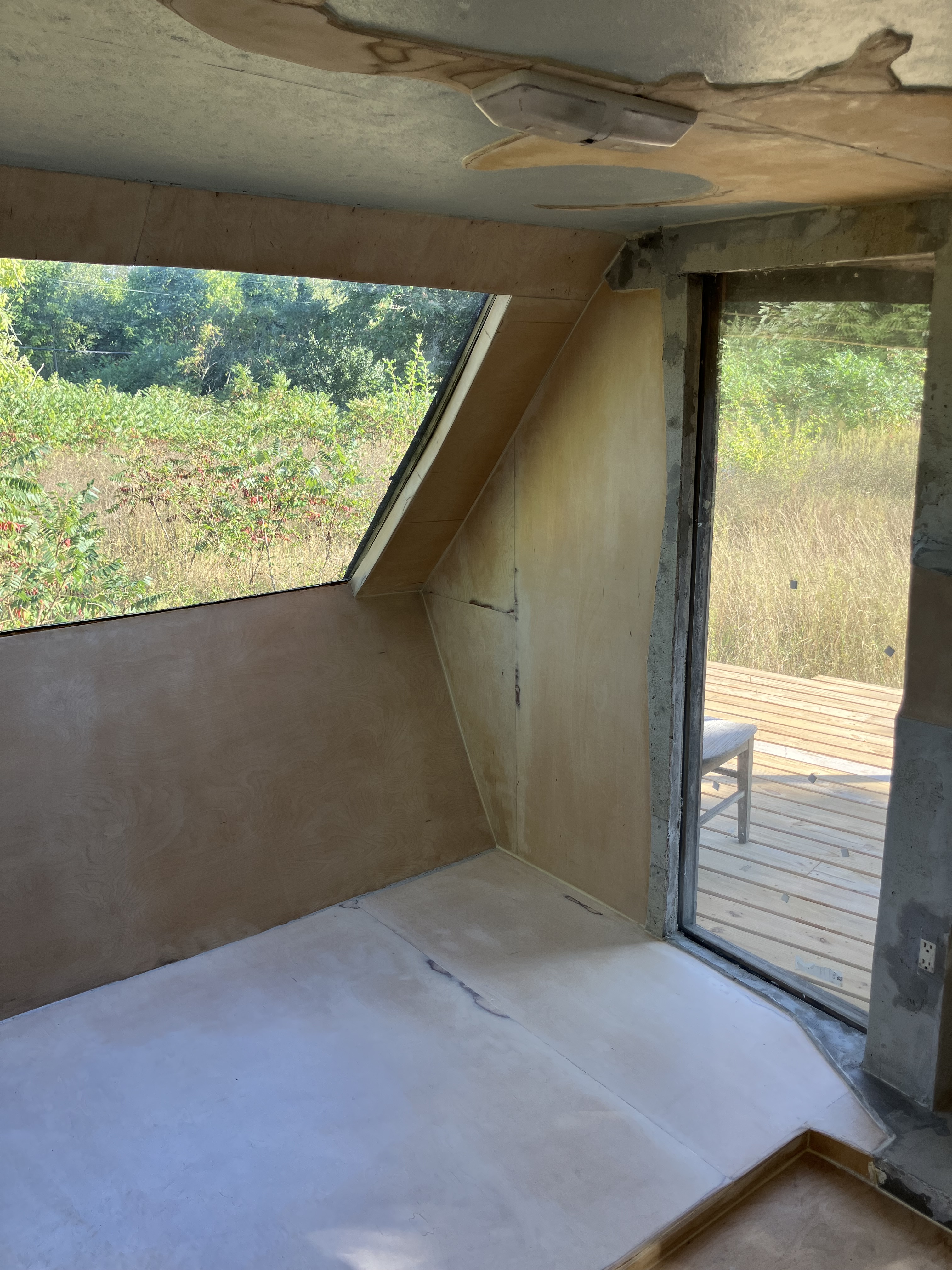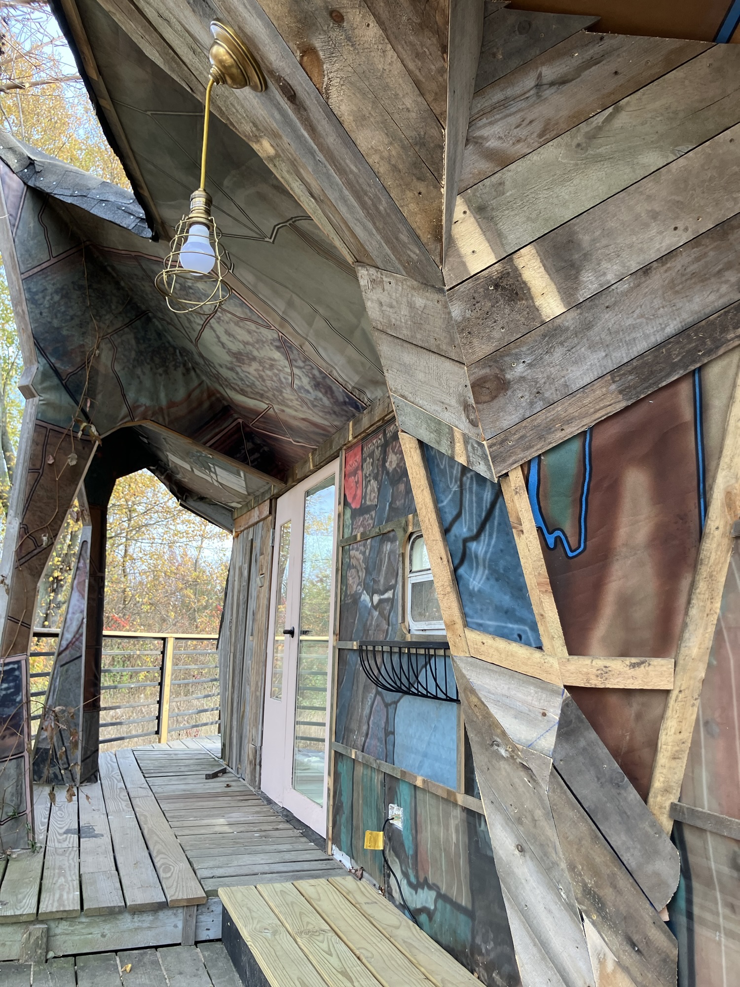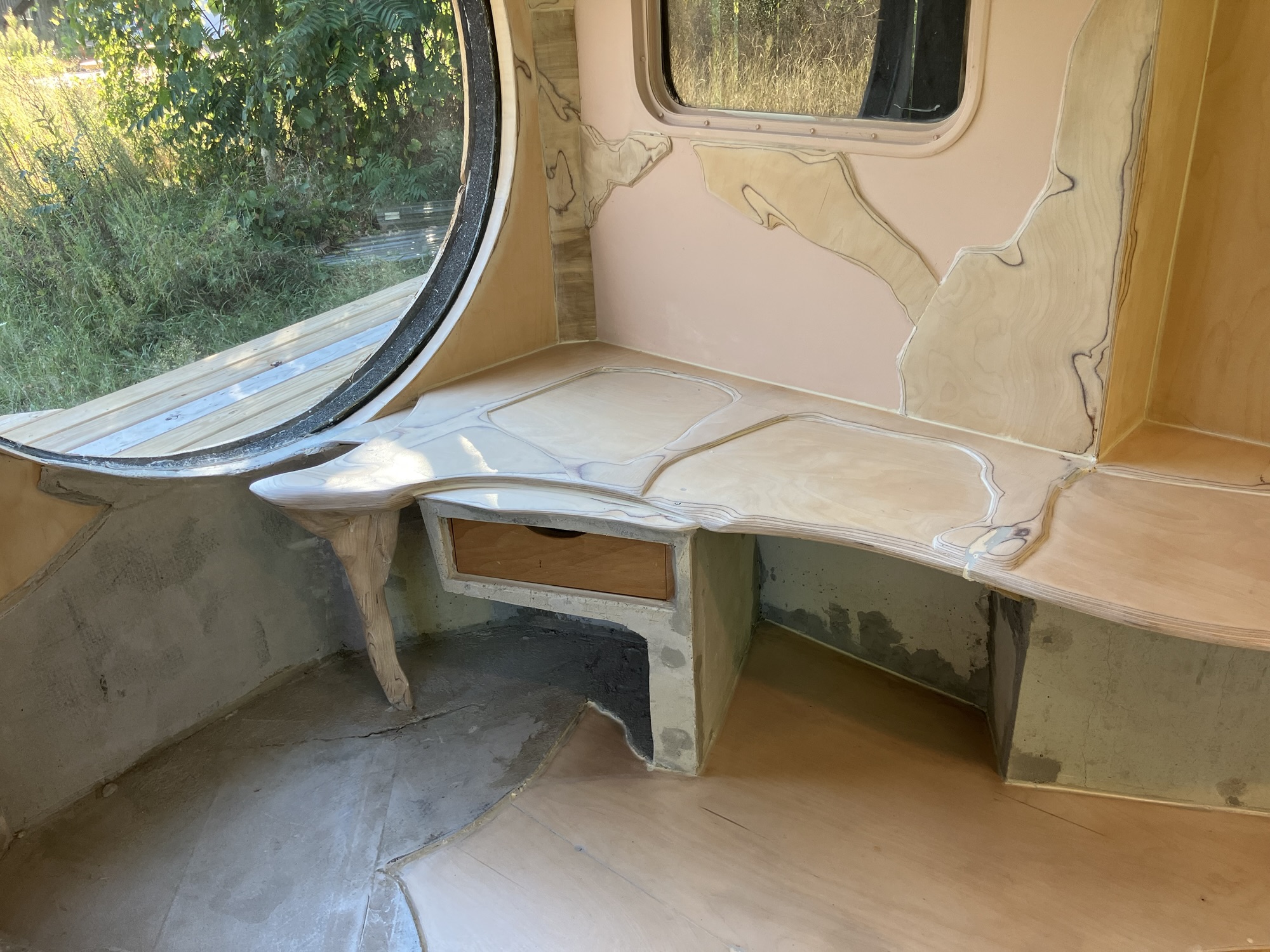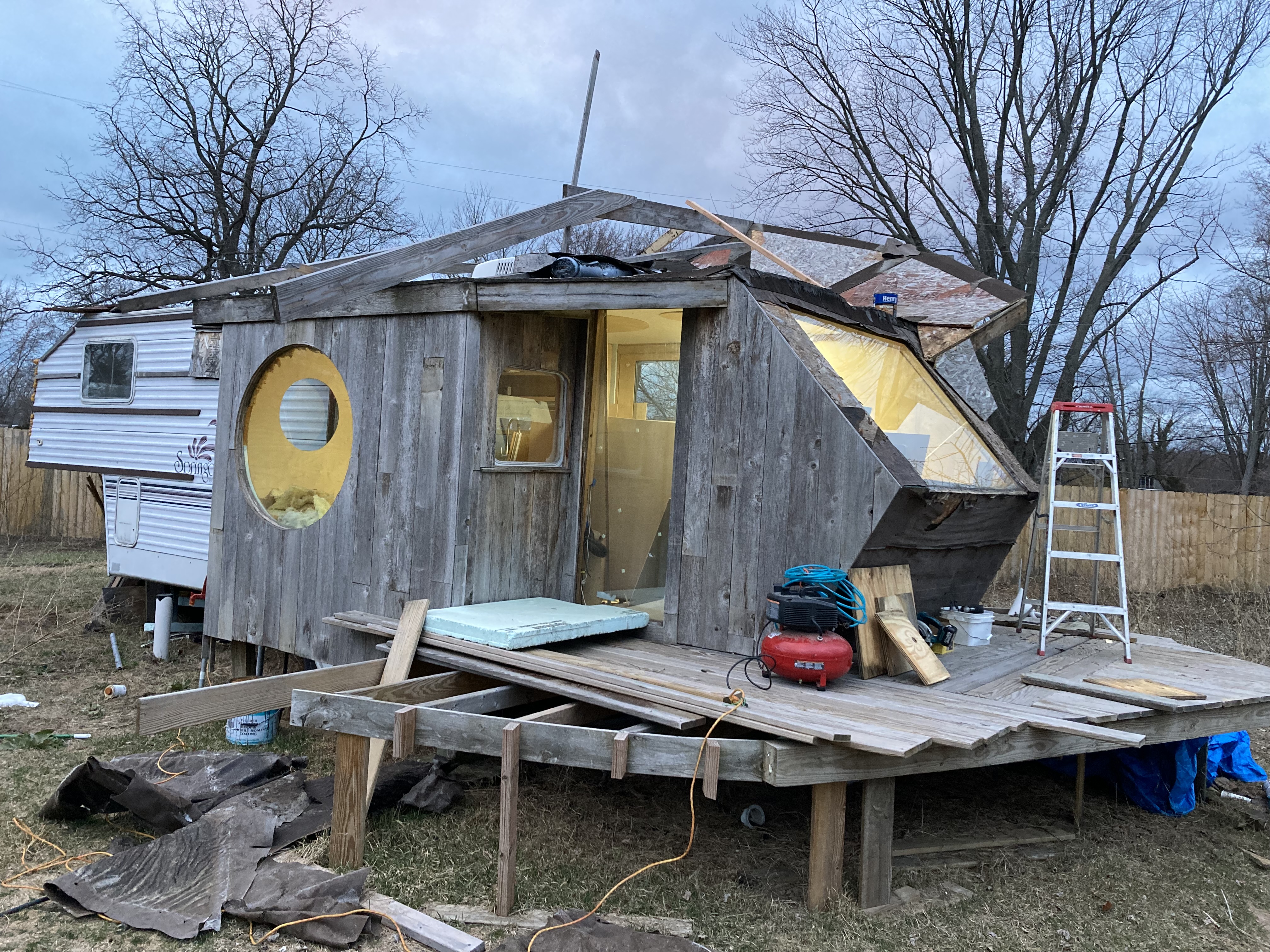 The Interloper is a collaboration between John Preus and Genevieve Wolff. Preus and Wolff purchased a 25′ derelict camping trailer for a song, gutted it and turned it into a mini house. It sits on the property of Matt Kellen/Blueprint, a short term rental property in SW Michigan south of Saugatuck. Construction and design work by Preus. Massive and humble gratitude to assistance from John Badal, Tadd Cowen, and Norman Teague.