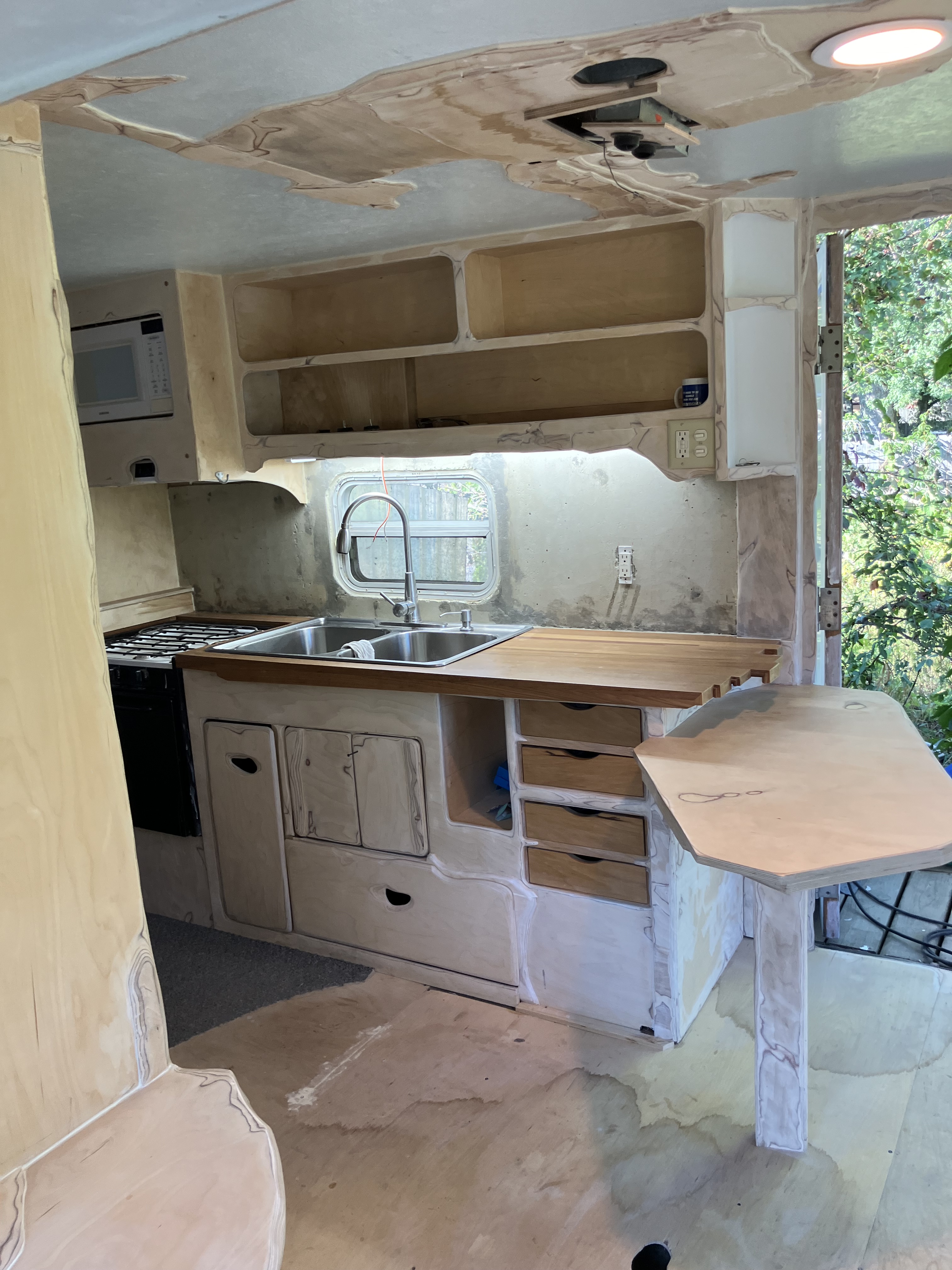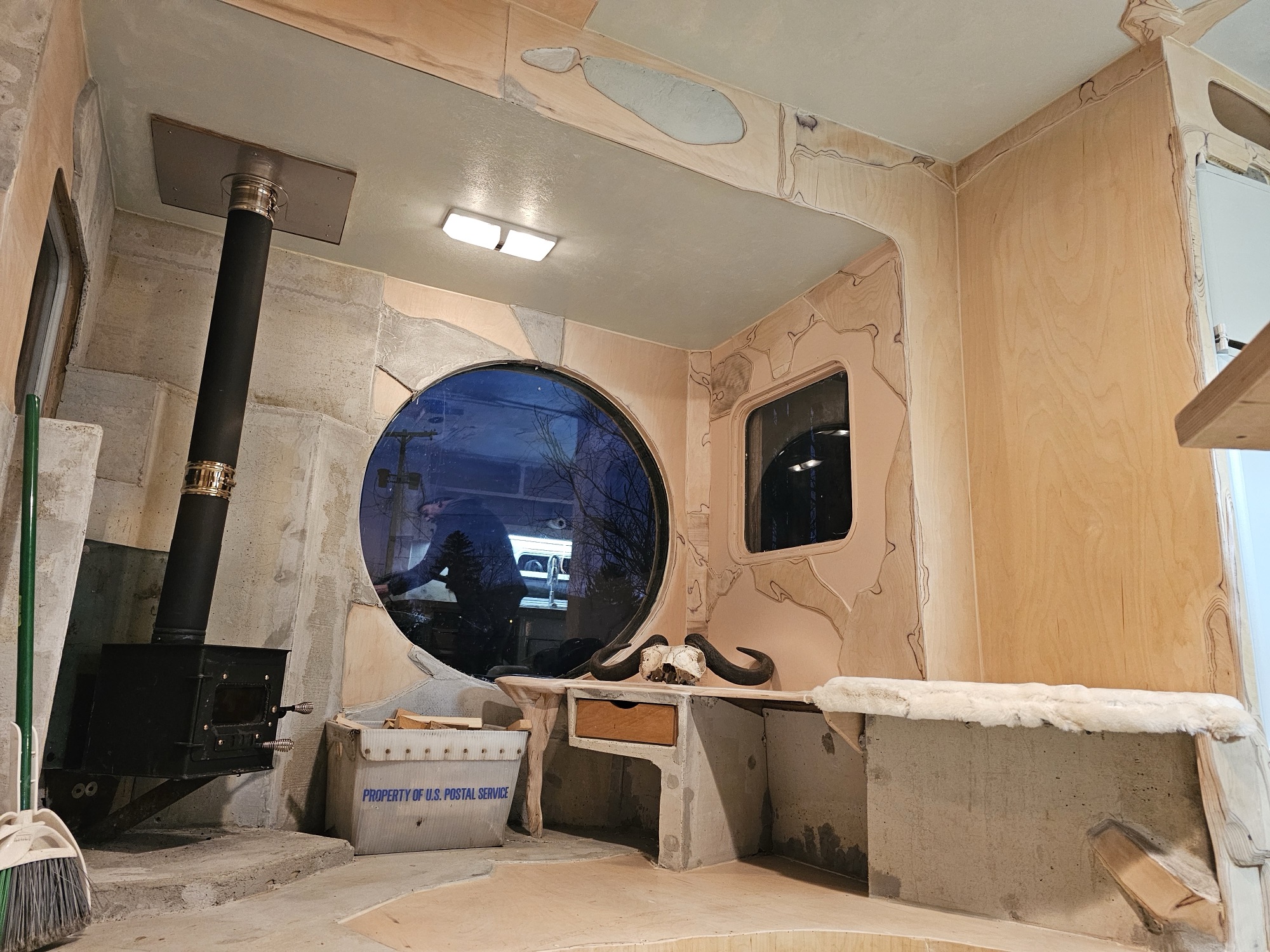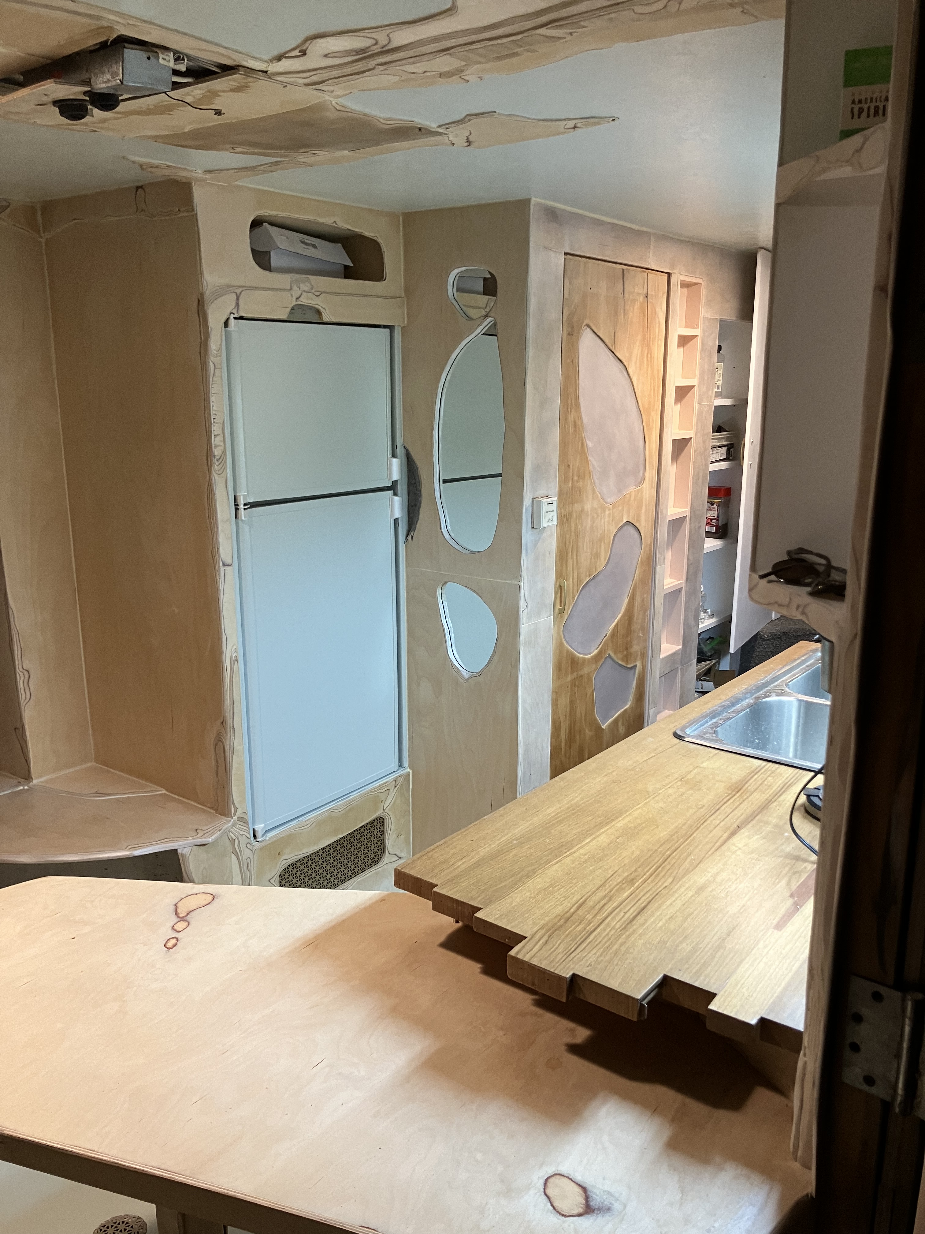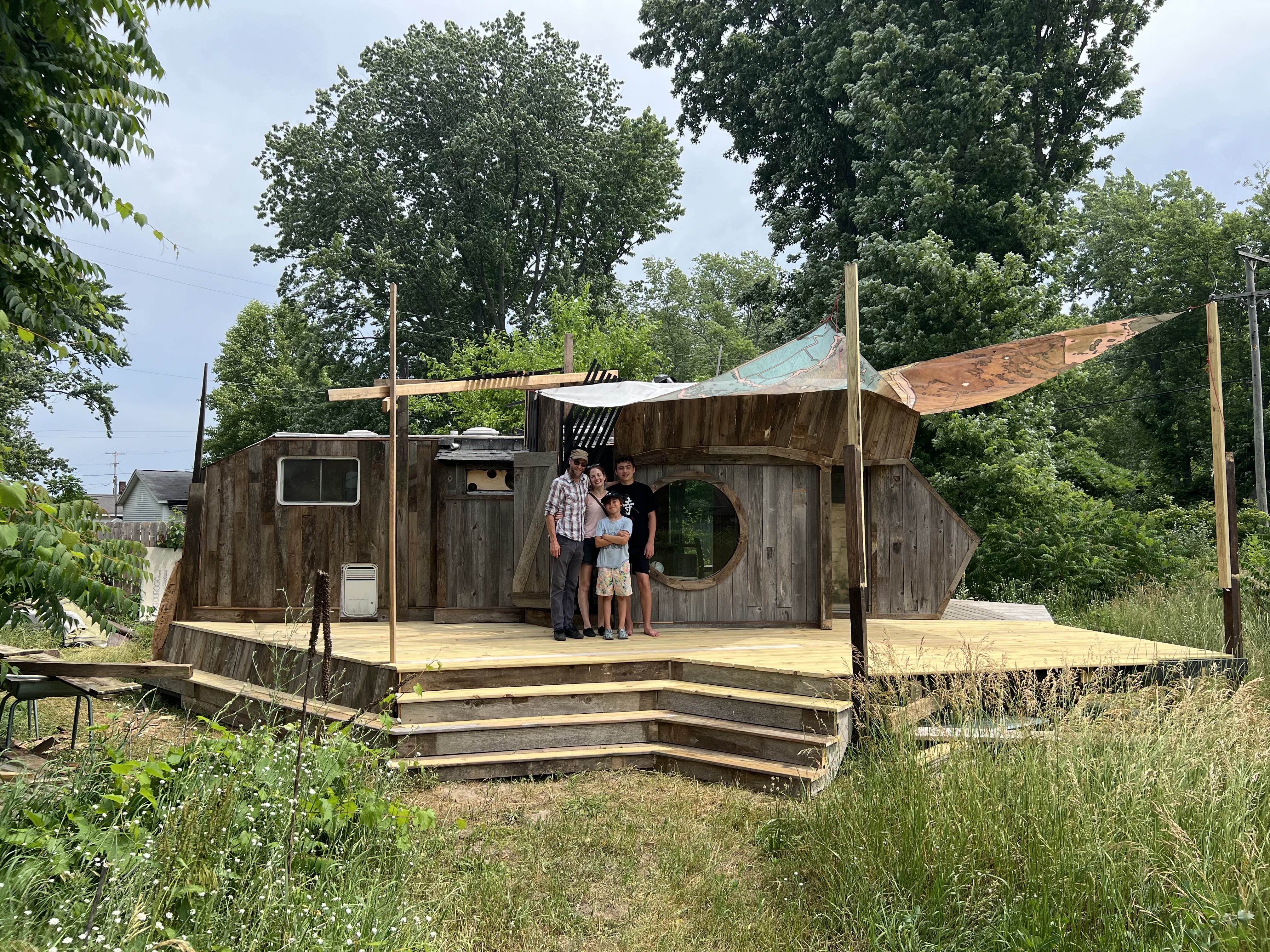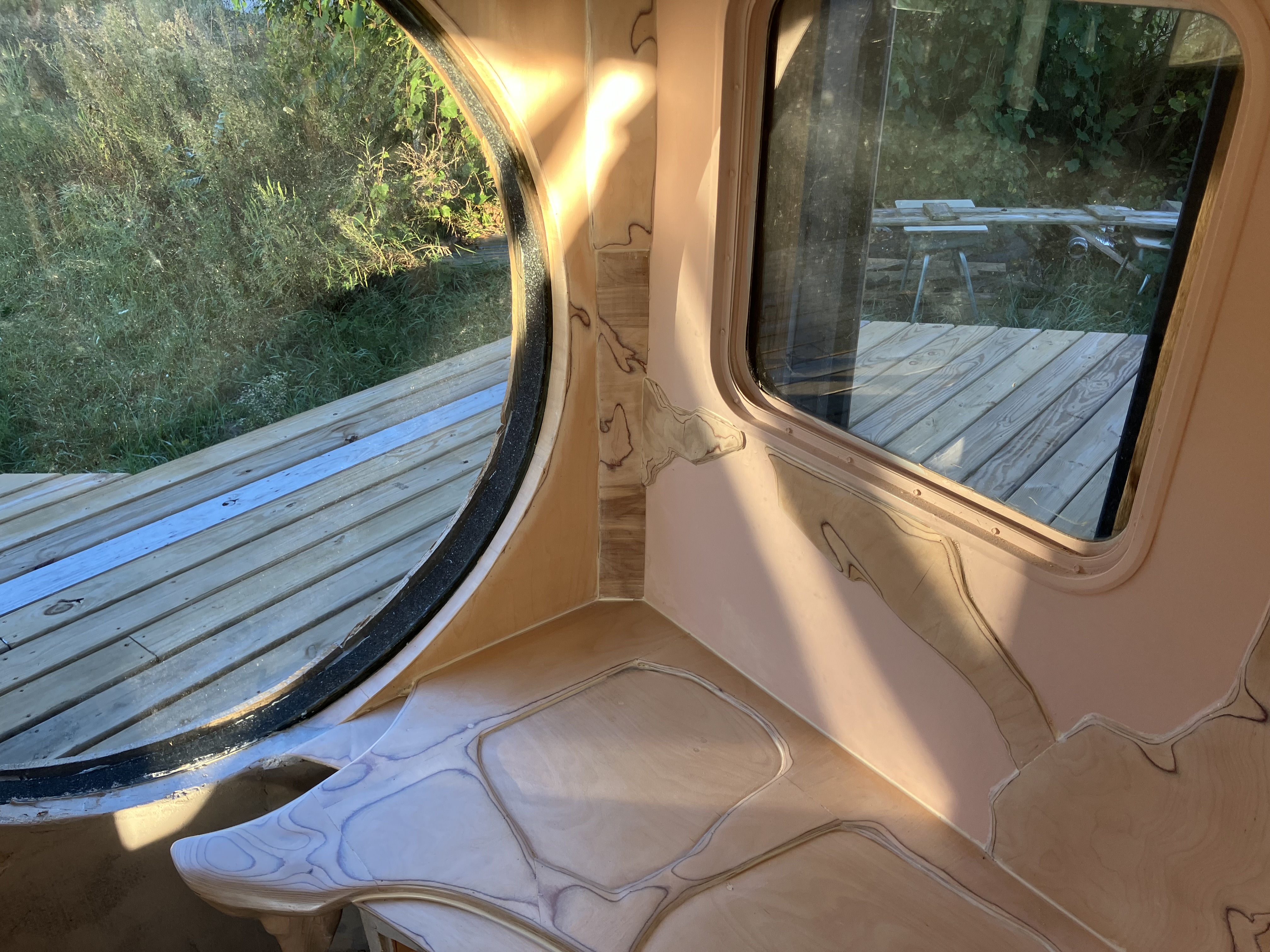 The Interloper is a collaboration between John Preus and Genevieve Wolff. Preus and Wolff purchased a 25′ derelict camping trailer for a song, gutted it and turned it into a mini house. It sits on the property of Matt Kellen/Blueprint, a short term rental property in SW Michigan south of Saugatuck. Construction and design work by Preus. Massive and humble gratitude to assistance from John Badal, Tadd Cowen, and Norman Teague.