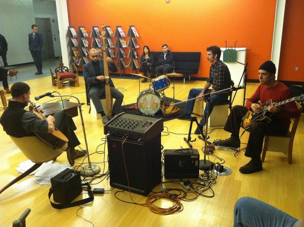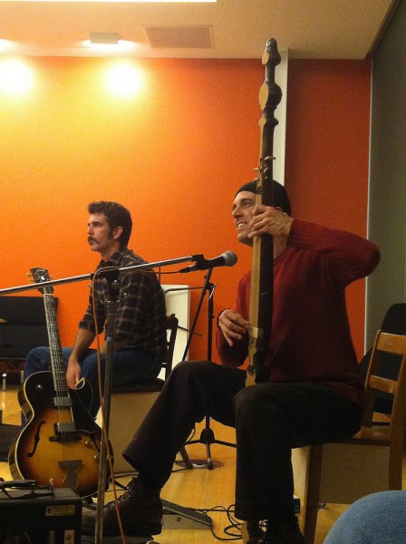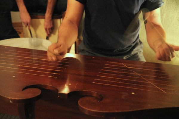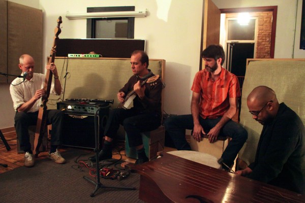 NMU excerpt. (Mikel Avery-headboard tongue drum, Leroy Bach-vocal and guitar, Tadd Cowen-chair cahon, John Preus-amplfied bedpost and guitar)