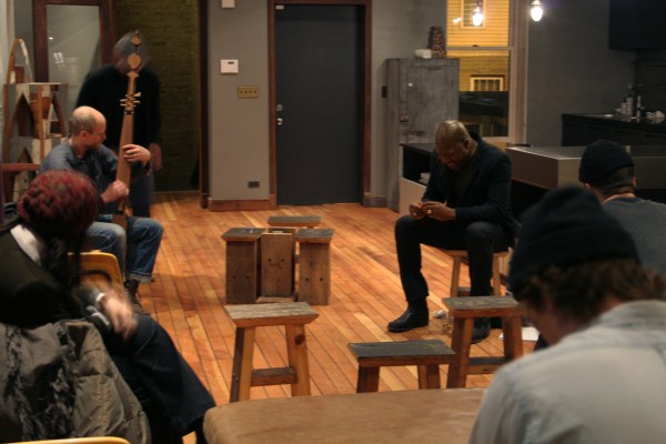 The Bus is Coming-Marvin Tate at Elmhurst Art Museum (Mikel Avery and Tadd Cowen-percussion, John Preus-amplified bedpost, Marvin Tate-vocals)