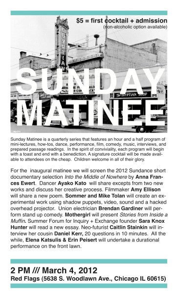 5638 S. Woodlawn Ave.Red Flags HostsPECHA KUCHA with Rachel Herman and Hannah KushnickA program of 6-minute 40-second spoken presentations accompanied/structured by 20 slides each shown for 20 seconds. traditionally, this has been a forum for architects and designers to discuss projects and innovations. Rachel and Hannah want to tweak this somewhat. They’ve managed to corral some of the brightest and most inquisitive minds to participate in this, our inaugural evening of pecha kucha at SHOP.mairead case, novelist and louder than a bomb organizer/goddesssteve ruiz, stellar art critic and iconoclastedward crouse, charming fabulisteleanore neumann, art historian + terra foundation administrator extraordinaireand then your steadfast and true hosts for the evening: hannah kushnick, neurotic and lovely genius, who will be investigating cabinets of curiosities. and rachel herman, who might possibly be evangelizing etymology.A Concert of Covers: Buildings