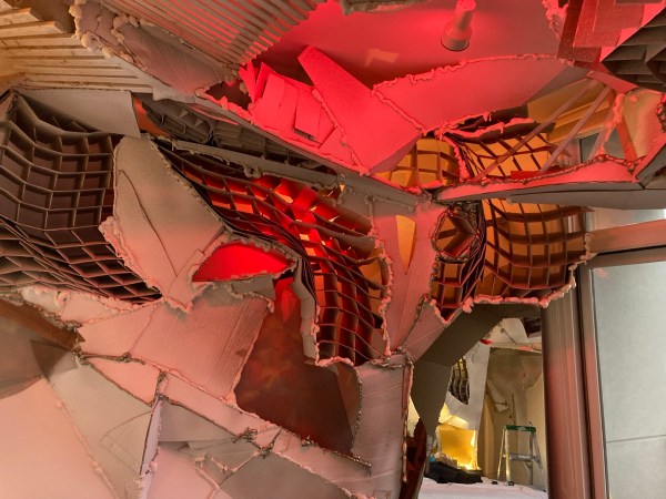 An elaboration on the collaborative installation, The Neutralized Third, with therapist and Preus’s former partner, Genevieve Wolff, using cardboard and light, spray foam and paint